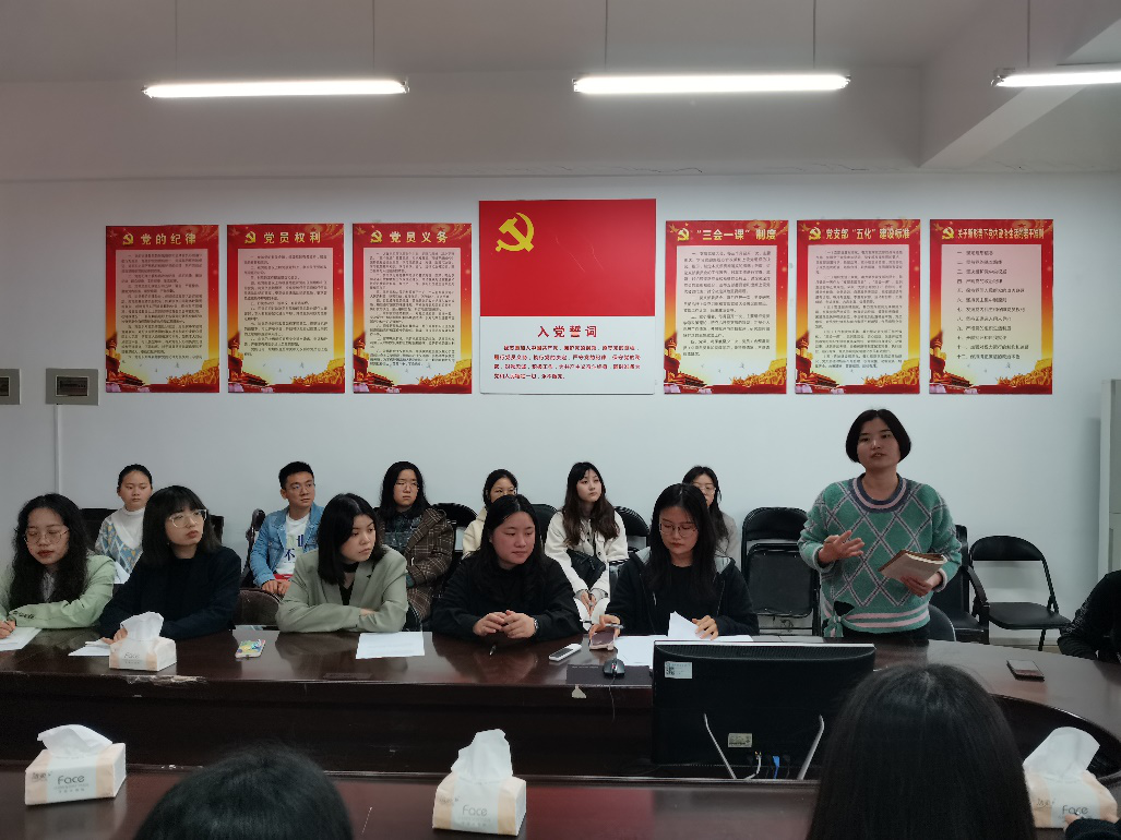 2021年3月16日,文学与新闻传播学院新闻学本科生党支部在文科楼B505召开发展对象接收大会,会议由陈姣姣同志主持,党支部书记楚艳鸽及支部全体成员参加大会。
