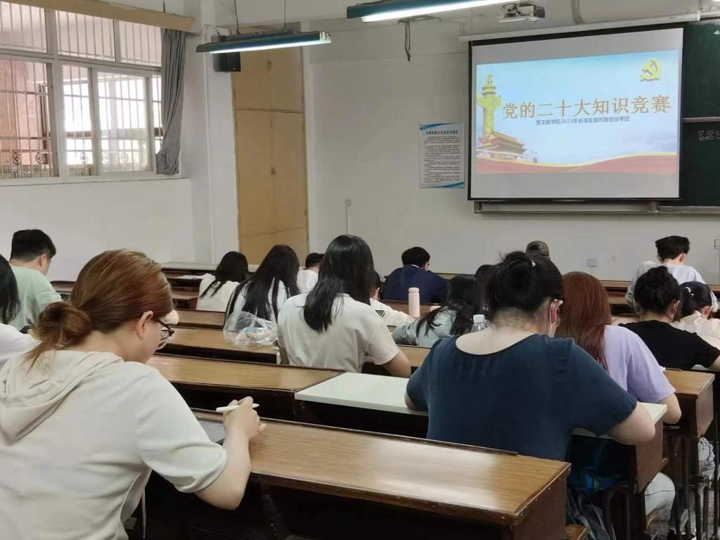 为深入落实并贯彻落实党的二十大精神,积极探索“互联网+党建”的新模式,进一步提升党员发展对象的理论知识能力水平,2023年6月6日13点30分,“党的二十大知识竞赛暨文新学院2023年春季发展对象结业考试”于雷竞技官网金盆岭校区三号教学楼成功举行。