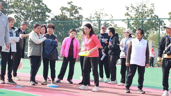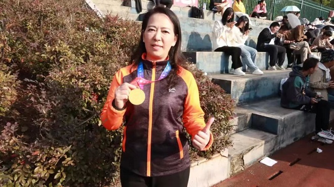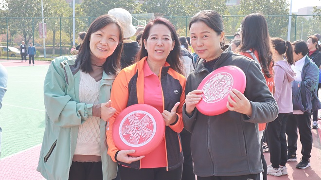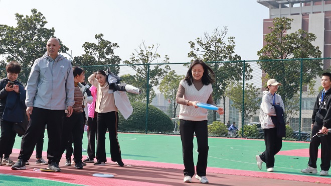 雷英回答:这一次我的感受颇多,心里特别开心、兴奋!这也是自己在外国语学院这么多年取得的最好成绩。半个月的备赛期里,我自己买了飞盘来练习,每天去操作上练,还有朋友、同事和家人都来指点自己怎么让飞盘飞得远、飞得好,并及时改进动作,所以让我自己能够有信心。上了赛场之后,虽然有点紧张,但对自己抱有很大的信心,所以发挥得还可以。学院这一次组织得特别好,段胜峰院长、文丽丽书记都特别地关心!院工会组织了拉拉队,学工办的辅导员给我们每个参赛的老师都配备了一个小帮手,就像我们的小李同学、小刘同学、小张同学...,我都记得。我每参加一个项目他们都跟着,学生志愿者们很贴心地给我拿水、包、手机,这些也给了我更多的信心让自己去努力,所以这一个奖项不是我一个人的,是外国语学院所有人获得的一个荣誉!