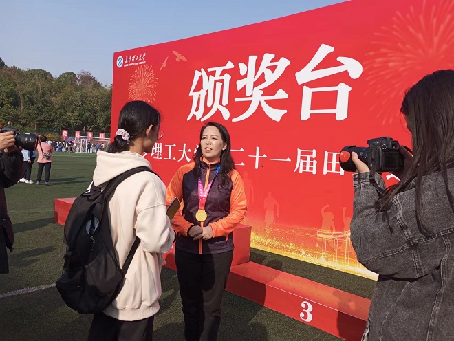小记者提问:首先恭喜雷英老师在本次飞盘比赛中获得冠军,想问一下您作为学院参加校第二十一届田径运动会的组织者、参与者及获奖者,有什么感受呢?