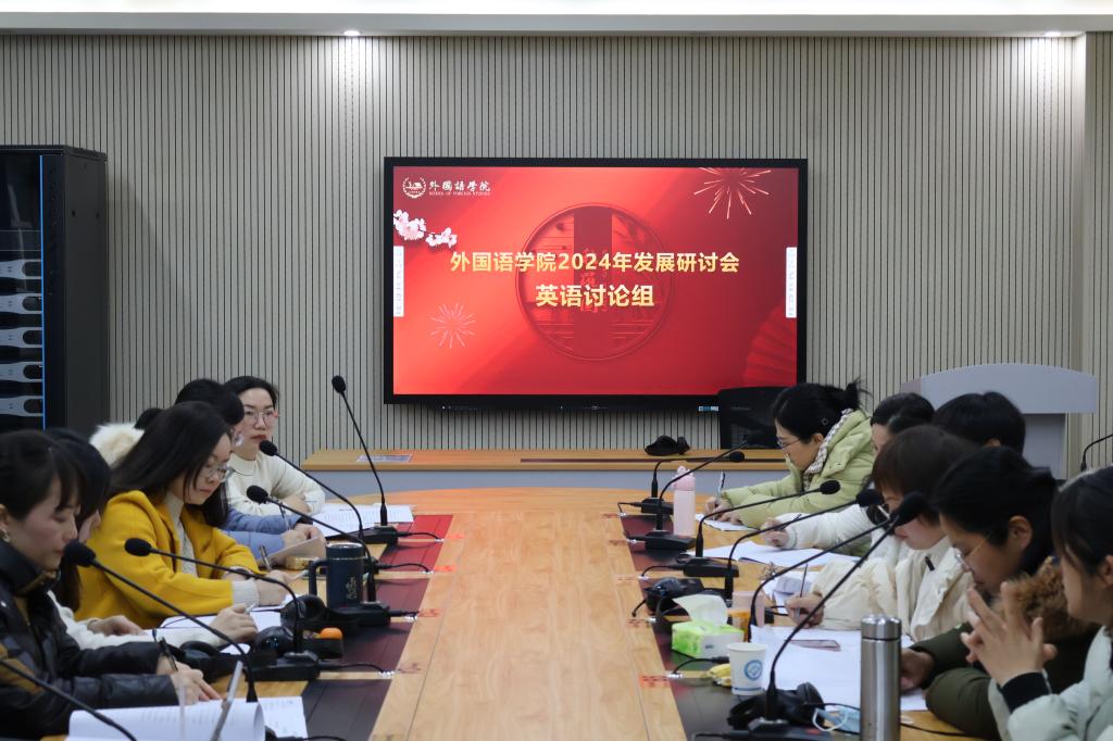 会议第一阶段,由学院党委副书记周芳主持学院2024年发展研讨会。学院院长段胜峰教授作《凝心聚力,团结奋斗,以实干实绩共同推进外国语学院高质量发展》的主题报告,系统总结了学院过去一年的工作,从新形势、新机遇、新作为三个“新”切入,深度剖析“2024年外国语学院应该怎么干”、“长沙理工大学需要一个什么样的外国语学院”、“我们想要建设一个什么样的外国语学院”三个问题。他以“实施七个工程”为方向,强调“七个聚焦”,详细阐述了学院新的一年乃至最近三年、五年的工作思路,继续抓牢内涵发展和核心竞争力建设,继续谱写学院高质量发展新篇章。聆听报告后,学院全体教师分为七个小组展开讨论,教师们就教学大纲制定、课堂教学方法、课程体系改革、绩效考核条例、学院文化建设等诸多方面展开深入讨论,并委派组内教师代表总结、分享研讨内容。