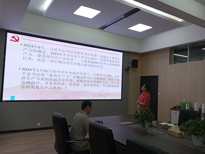 黄坚副院长领学《加快发展新质生产力和加快构建现代产业体系》,他从何为新质生产力、2024年政府工作报告关于新质生产力关键词、如何为发展新质生产力蓄势赋能等三个方面进行解读。他重点讲述科学认识新质生产力的基本内涵、准确把握新质生产力的主要特征、以战略性新兴产业和未来产业为载体,形成高效能的生产力。