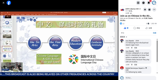当地时间2025年4月12日上午,利比里亚大学孔子学院在利国家广播电台《空中汉语》栏目播出了2025年“国际中文日”专题节目,主题为“中文:穿越时空的礼物”。节目通过ELBC FM99.9频道播出,并同步在国家广播电台官方脸书页面直播,吸引了大量听众与网友的广泛关注与参与。