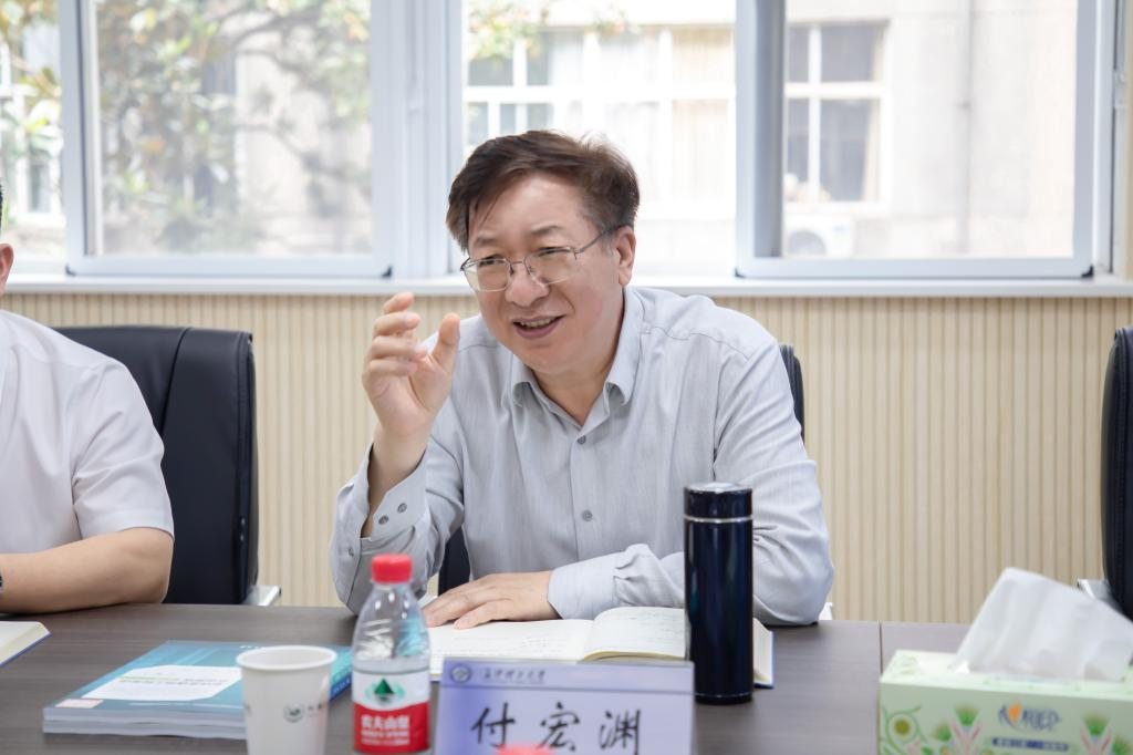 在认真听取汇报后,付宏渊对学院应对办学形势变化,主动识变、应变和求变的举措给予了充分肯定,并提出了四点要求:一是学院班子要进一步思考和分析人工智能背景下新文科面临的机遇和挑战,增强谋划工作和引领学院发展的能力,推动深化改革;二是要深入认识到“人”才是推动社会发展的关键力量,进一步改进人才培养工作,切实加强外语课程的改造提质,提高学生的外语沟通能力。三是要进一步重视和加强英语学科和专业建设,采取有效措施提高科研产出,既要强化学生语言能力,也要彰显工程特色。四是要加强教师队伍建设,提振干事创业的精气神,加强对年轻教师的指导和培养,强化教师之间的互助协作,带领教职工聚焦教学科研质量提升,扎实推进学院高质量发展。