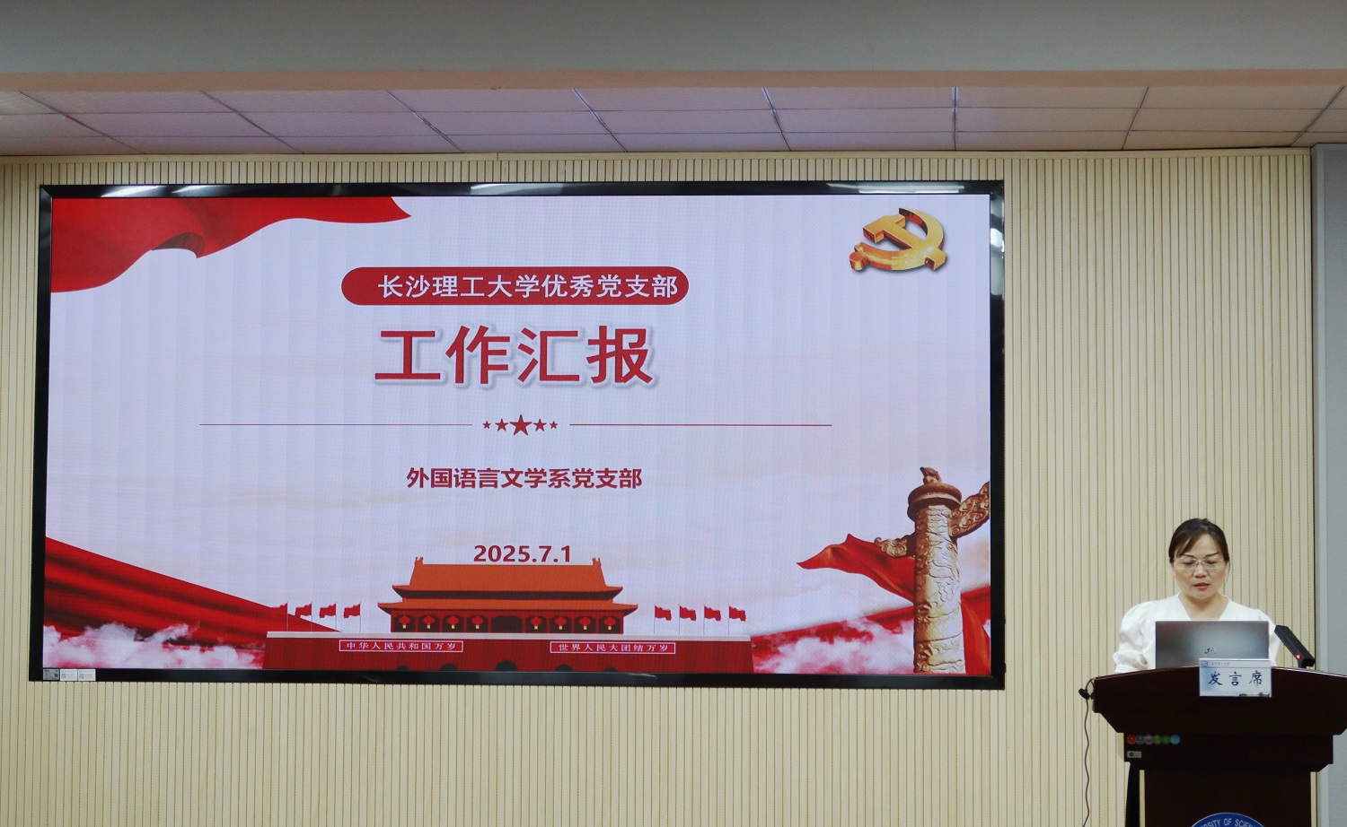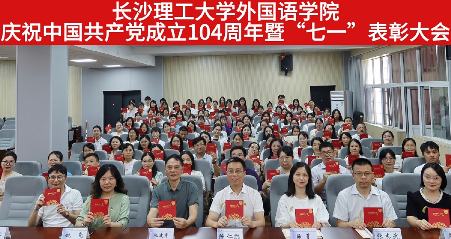 7月1日,外国语学院在321报告厅召开庆祝中国共产党成立104周年暨“七一”表彰大会。150余名师生党员、入党积极分子参会,学院党政班子全体成员和校党委组织部特邀组织员张建军同志等出席。