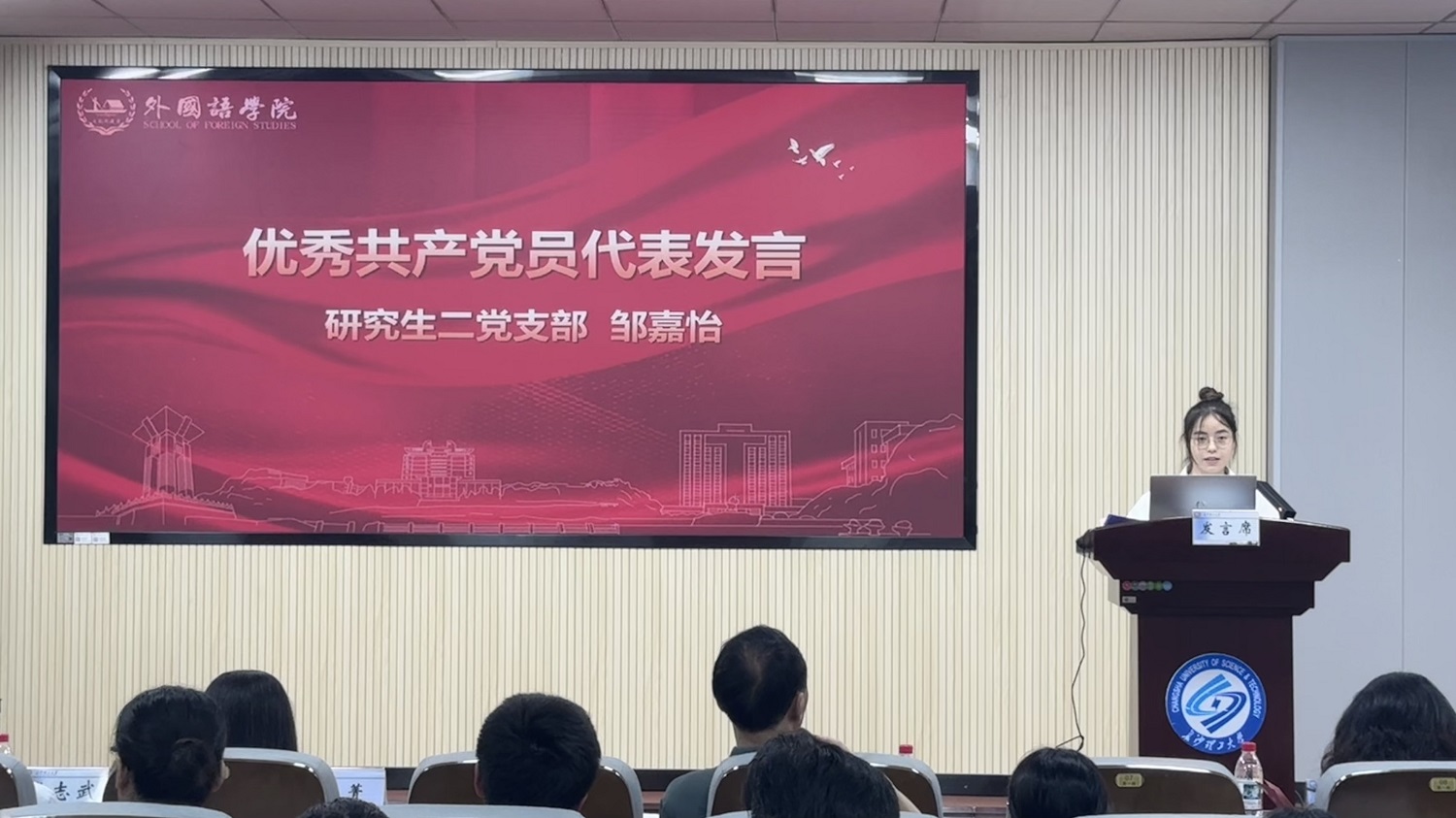优秀学生党员代表邹嘉怡发言