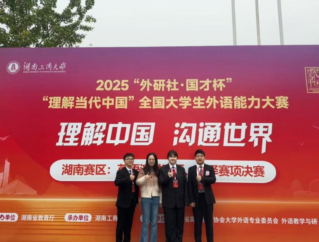 2025“外研社·国才杯”“理解当代中国”湖南省大学生英语能力大赛于10月26日在湖南工商大学落下帷幕。本次赛事由湖南省教育厅主办,全省多所高校的优秀选手齐聚赛场,竞争尤为激烈。雷竞技官网学子在演讲、口译两大项目中表现突出,最终收获演讲赛项金、银、铜奖各一项,口译赛项同样揽获金、银、铜奖各一项,充分彰显了长理学子的外语综合素养与专业能力。