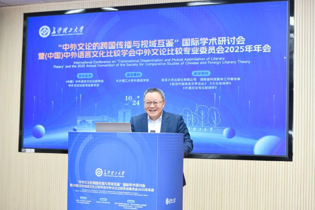 10月24日至26日,“中外文论的跨国传播与视域互鉴”国际学术研讨会暨(中国) 中外语言文化比较学会中外文论比较专业委员会2025年年会在长沙理工大学金盆岭校区隆重召开。此次会议由(中国)中外语言文化比较学会中外文论比较专业委员会主办,长沙理工大学外国语学院承办,复旦大学出版社有限公司、湖南省科技翻译工作者协会、《复旦外国语言文学论丛》《文化与诗学》《外国文论与比较诗学》协办。来自国内外高校、科研院所的专家学者齐聚长沙,围绕中外文论的跨文化传播与学术互鉴展开深度研讨,为推动全球文论研究的多元发展注入新动能。