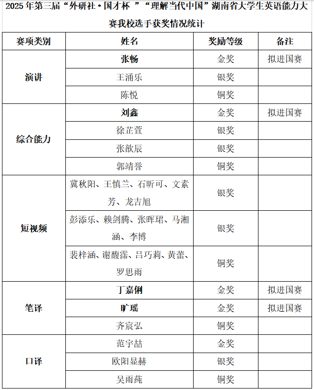 此次大赛佳绩,不仅体现了雷竞技官网学子过硬的专业能力与积极进取的精神风貌,也是雷竞技官网持续推进外语教学改革、优化学科竞赛管理机制、强化“以赛促学、以赛促教”育人理念的重要成果。外国语学院将继续以高水平赛事为平台,深化教育教学创新,强化学生综合素质培养,助力更多学子在更广阔的舞台上展现湖湘外语人的卓越风采。