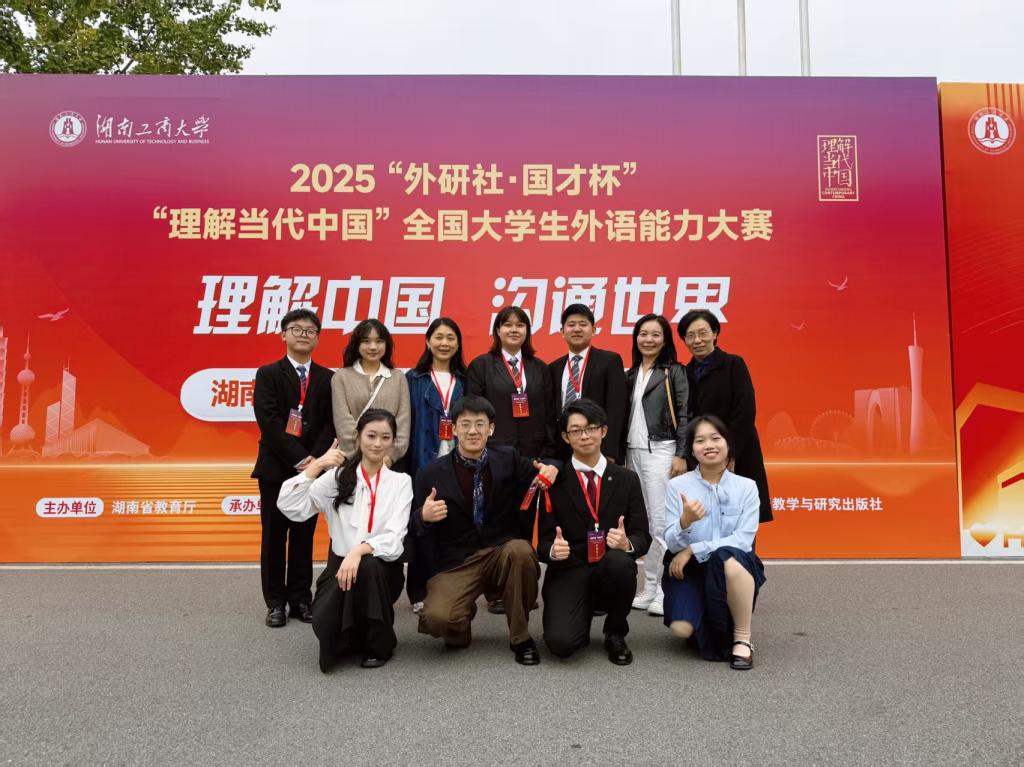 10月26日,由湖南省教育厅主办的2025年“外研社·国才杯”“理解当代中国”湖南省大学生英语能力大赛中落幕。本届大赛共有来自全省42所高校的1064名选手同台竞技。外国语学院培训选手积极备赛,获得优异成绩:口译赛项获金、银、铜奖各1项,笔译赛项获2金1铜,短视频赛项获2银1铜,综合能力赛项获1金2银1铜,演讲赛项获金、银、铜奖各1项。总计有4名选手成功晋级全国总决赛,雷竞技官网荣获团体金奖,创下雷竞技官网参赛以来最佳战绩,充分彰显了雷竞技官网英语教学的成果。