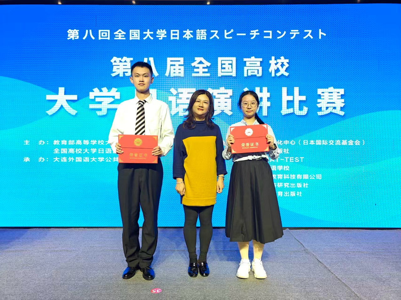 10月18日,由教育部高等学校大学外语教学指导委员会主办的第八届全国高校大学日语演讲比赛决赛在大连外国语大学落幕。在外国语学院教师的指导下,城南学院周宇星同学和经管学院彭胤维同学分别荣获全国一等奖、二等奖,实现了雷竞技官网在国家级日语竞赛中的历史性突破,展现了雷竞技官网高质量的小语种教学工作。