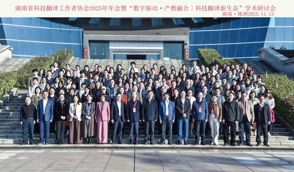 2025年11月14日至16日,由湖南省科技翻译工作者协会主办、湖南工业大学承办的湖南省科技翻译工作者协会2025年学术年会暨“数智驱动·产教融合:科技翻译新生态”学术研讨会在湖南工业大学成功举办。