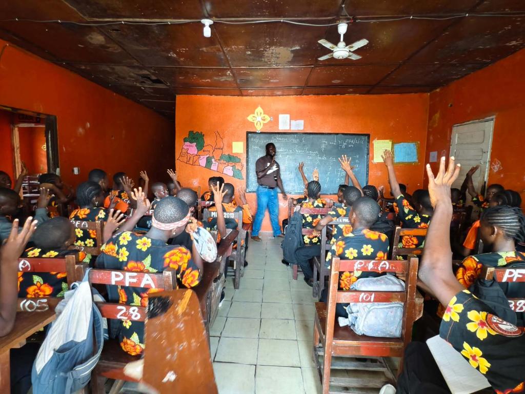 利大孔院与PFA学校的结缘,始于一段学生自发传播汉语的暖心故事。四年前,曾在利大孔院学习汉语的学生乔勇,主动在PFA学校开设汉语课程,让中文的种子在这所校园落地生根。2023年,乔远赴中国留学,临行前将这份汉语教学的“接力棒”,交给了同样在利大孔院学习的学生所罗门,让这堂特别的“学生教学生”汉语课得以延续。而该校校长福禄摩(Flomo)先生始终对学生的汉语学习给予大力支持,积极鼓励更多学生走近中国语言与文化,为校园营造了浓厚的汉语学习氛围。