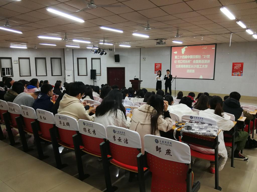 11月13日,外国语学院承办的第二十四届“21世纪·可口可乐杯”全国英语演讲比赛湖南赛区长沙理工大学校园选拔赛在云塘校区文科楼A100圆满落幕。