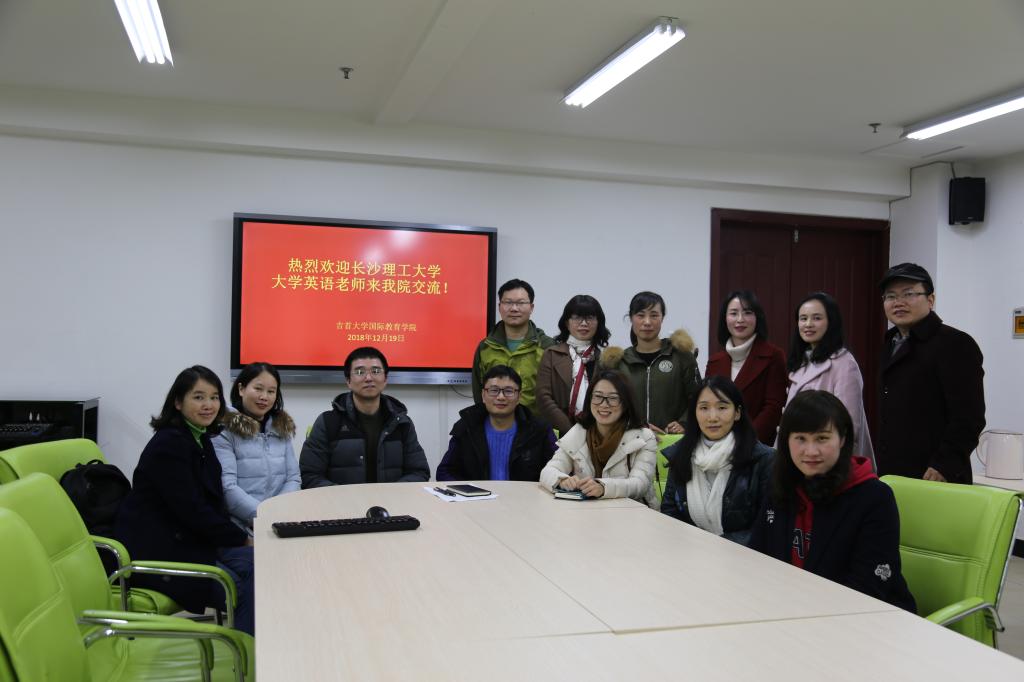 2018年12月19日,长沙理工大学外国语学院公共外语提高部和基础部负责人和骨干教师代表谷丰、陈润兰、崔巍、谭姗燕、冯春、杨龙秀、钟桂蓉一行7人赴吉首大学调研。吉首大学国际教育学院对本次调研活动高度重视,教育学院院长、院长助理、实验室主任、教研室主任、院办主任和骨干教师出席调研活动。双方就itest英语测试软件系统使用效果和U校园学习软件在大学英语第一、二课堂教学中的应用进行深入细致研讨。