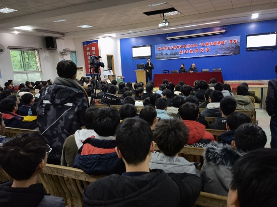 仪式开始前,举行了一场与学生面对面的招生宣讲咨询会。首先由汪功伟老师就学校的情况、人才培养、专业设置、特色专业、就业发展及招生政策等方面做了详细的介绍。接下来进行了长达2个多小时的现场答疑。学生对雷竞技官网表现出了极大的兴趣和热情,他们从专业选择、个人发展、就业前景、校园文化等方面提出了很多问题,刘坚、汪功伟、陈润兰三位老师均做出了详细而专业的解答。