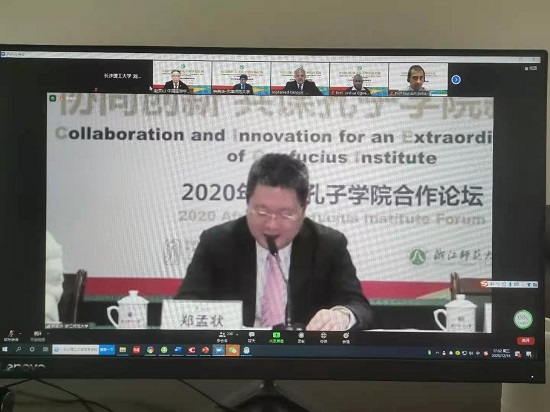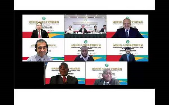 北京时间12月16日晚,2020年非洲孔子学院合作论坛成功在线主办,我院利比亚里大学孔子学院候任院长周红专、湖南省非洲中心副主任刘坛孝参加。本次在线会议由中国国际中文教育基金会、浙江师范大学联合主办,以“协同创新,共谋孔子学院新发展”为主题,来自中国、南非、喀麦隆、肯尼亚、赞比亚、乌干达等孔子学院(课堂)合作院校的领导、中外方院长、相关负责人等近300名代表云端参会。