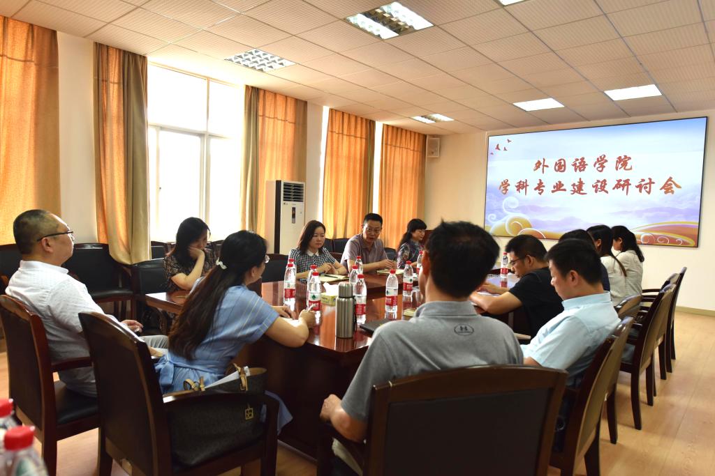 7月18日,外国语学院在文科楼A603会议室召开学科专业建设研讨会。副校长蒋璟萍,教务处处长陈瑜,研究生院院长管德清受邀讲学,学院全体党政领导班子成员、各科室主任、系(副)主任、党支部书记、辅导员等20余人参加会议,会议由院长段胜峰主持。