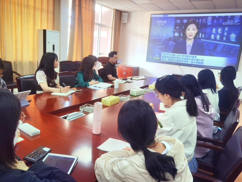 首先,与会师生一同观看了4月25日习近平总书记在中国人民大学考察的相关视频报道,王双书记对习近平总书记重要讲话精神进行了详细地传达和解读。王双表示,全体师生要学习贯彻习近平总书记重要讲话精神,结合外语学科专业特色,致力于传承和发展文化摆渡精神,推进湖湘文化国际化传播,努力建设湖湘文化国际化传播的前沿阵地。她强调,希望外语学子能够树立大格局、大视野,将个人前途命运与祖国前途命运紧紧联系在一起,不断提升自我修养,时刻响应祖国号召,将自己的人生融入祖国大好河山的建设中去。