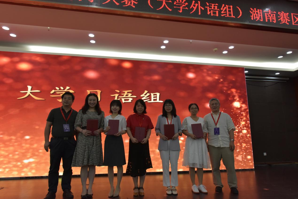 参赛选手们在复赛授课和决赛说课两个环节中表现出备课选题的时代性、良好的文本文案理解力、临场授课的个性化以及对课堂互动恰到好处的掌控等特点,尤其突出了外语课程思政内容,展现了新时代湖南省普通高等学校外语教师的教学风采。其中,大学英语综合课组选手23人,大学英语(视)听说课组选手19人,大学日语组选手19人进入复赛,最终三组分别有9人、7人、7人晋级决赛。经过一天半的激烈角逐,最终来自湖南大学的陈心怡老师、肖宇彤老师,来自衡阳师范学院的贺利燕老师分别获得大学英语综合课组、大学日语组、大学英语(视)听说课组特等奖。
