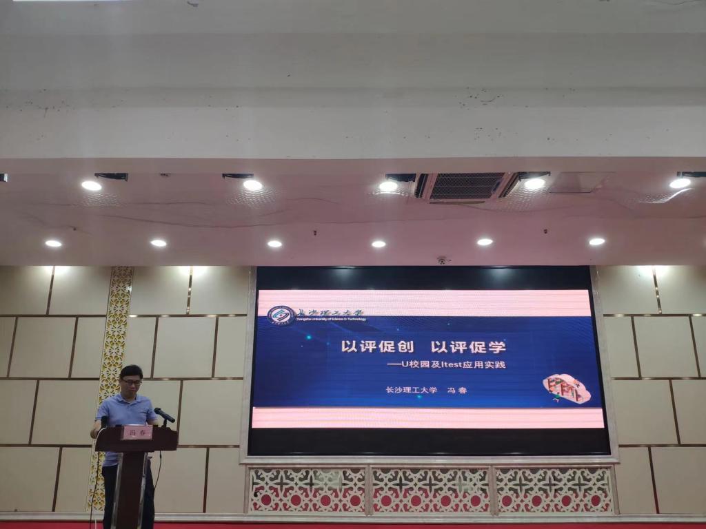 雷竞技官网外国语学院公共外语一教研室主任冯春老师应邀在会上作主题发言。冯老师发言的题目是“以评促创,以评促学”。发言中,他介绍了新时代雷竞技官网大学英语教学实践中创新使用“U校园”和“iTEST”等电子辅助软件促进教学良性发展的成功经验。冯老师的发言引起与会代表广泛关注和一致好评。