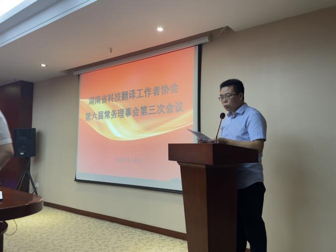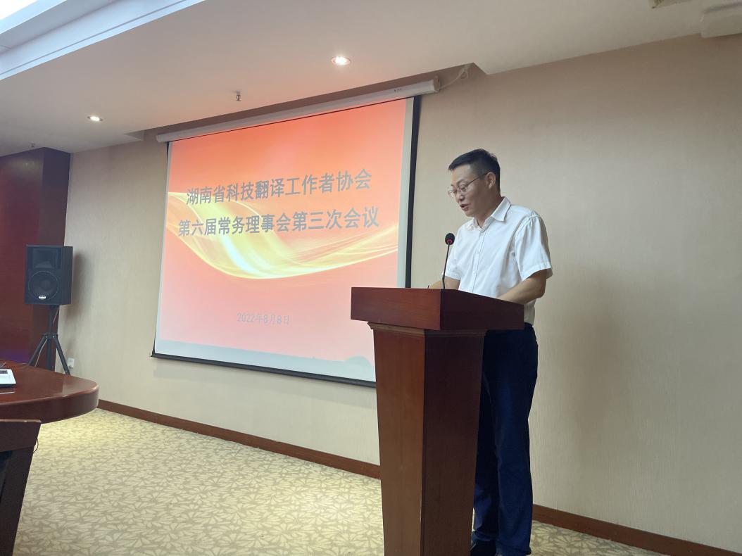 2022年8月8日上午,湖南省科技翻译工作者协会(以下简称湘科译协)第六届常务理事会第三次会议在长沙理工大学国际学术交流中心会议厅召开。