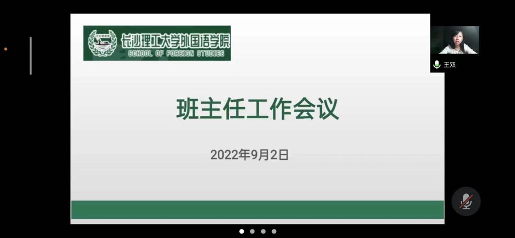 首先,王双汇报了2022年秋季开学学生报到返校情况、疫情防控、就业及学生思想状况等工作她表示,在学院领导、辅导员、班主任的共同关心关注下,开学以来学院学工各项工作进展顺利,学生状态良好。尤其是目前疫情防控形势严峻,学工在涉疫人员管理、全员核酸检测、返校审批等方面都投入大量细致繁琐的工作,希望班主任老师共同做好学生思想教育引导,确保学生主动理解、支持学院工作。