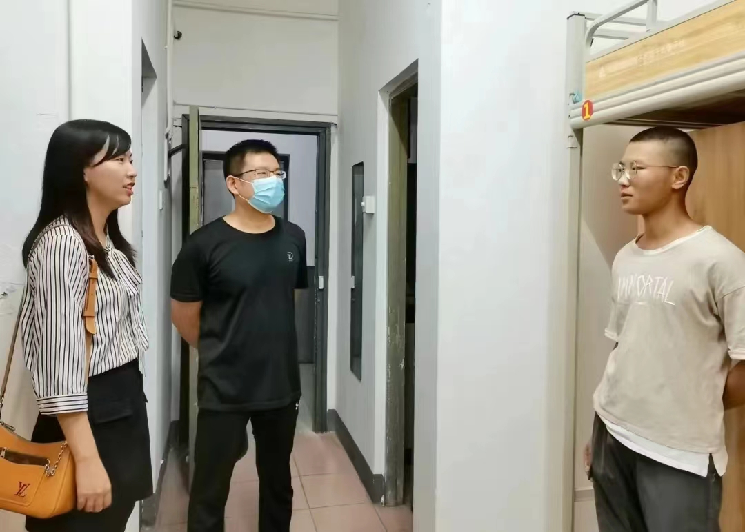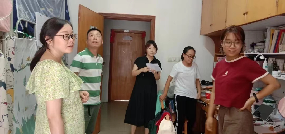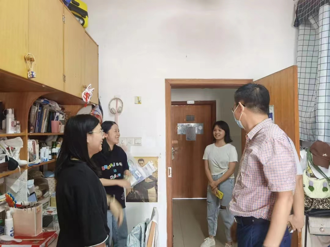 在本次走访过程中,每到一个老生宿舍,学院领导老师都亲切地与学生进行交谈,关心他们假期情况、返校后网课的学习情况、提醒疫情防控注意事项和给予职业发展的建议。在新生宿舍,老师们仔细询问大家来到学校后是否适应,并仔细查看宿舍的各种设施是否完善。在走访看望中,学院领导老师提出几点希望:一是希望同学们尽快调整好状态,尽快适应学校生活;二是保持宿舍内的卫生整洁;三是注意人身及财产安全;四是希望同学们要勇于去表现自我,敢于展现自身特长,做自信的文化摆渡者。