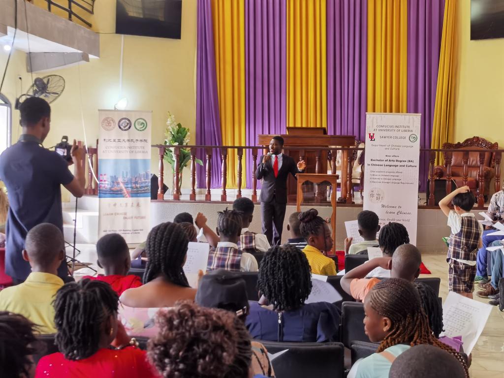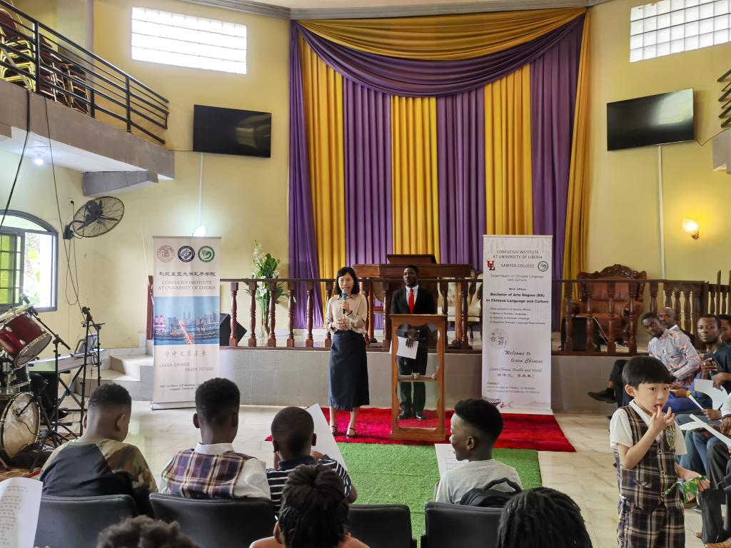 随后,周红专院长上台致辞。她说:“学好中文是一条希望之路。学好了中文,就可以在留学、就业等方面有更强的竞争力。利比里亚大学刚刚成立了中国语言与文化本科专业,希望同学们在完成中学的学业后,选择报考利大的中文专业,争取赴中国留学的机会。”她的发言引起了全场师生热烈的回应。