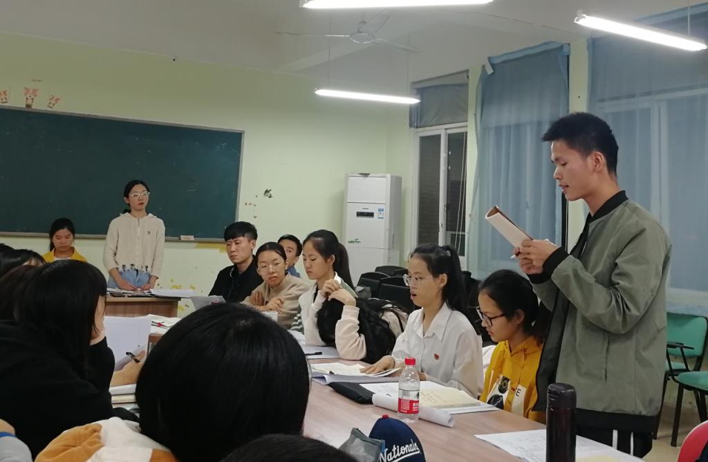 1018日,学院本科生党支部在文科楼A503举行“如何践行学生党员干部的初心与使命”党课学习活动。院党委副书记陈仁凯、党建辅导员钱通华出席。