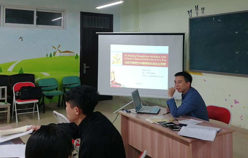 10月18日,学院本科生党支部在文科楼A503开展全体本科生党员重温入党初心的活动。学院党委副书记陈仁凯、党建辅导员钱通华出席。