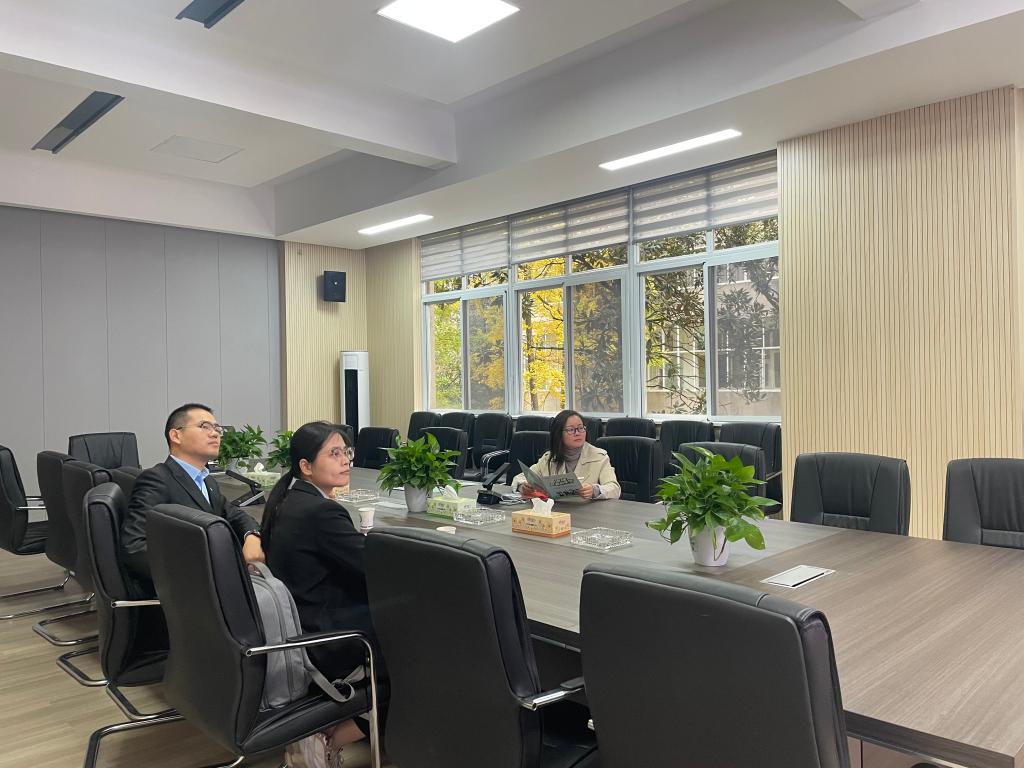 随后企业代表播放了公司宣传片,何孟凡表达了公司对于外语类人才的期待,企业愿为学生提供优质的实习机会。他表示可以从就业支持方向架起高校与企业间的桥梁,助力学校人才培养与企业发展。他提出可以组织师生到企业参观,深入企业、了解企业,以解决拓宽学生就业出口问题。会上校企双方进行了深度的交流洽谈,并达成了明确的合作意向。
