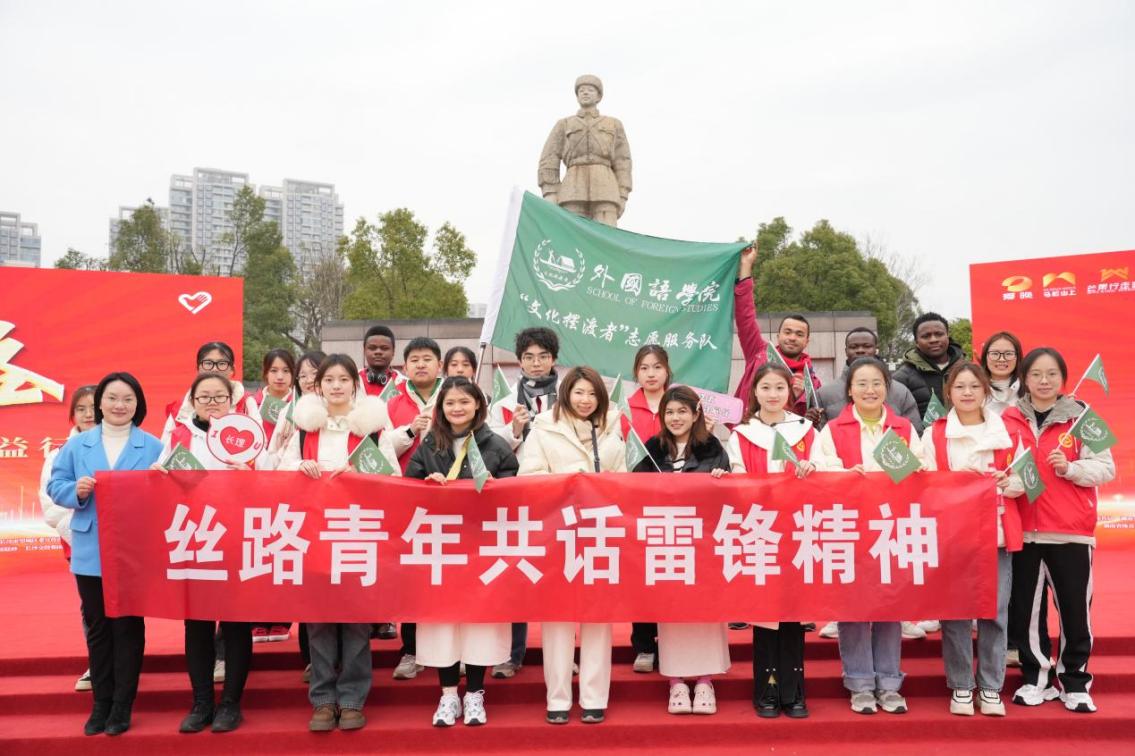在第61个“学雷锋”纪念日来临之际,长沙理工大学外国语学院“文化摆渡者”志愿服务队与该校来自“一带一路”沿线国家的青年留学生们一同前往雷锋纪念馆,用英文向外国留学生讲述雷锋的生平事迹,帮助留学生深入理解雷锋精神的丰富内涵。