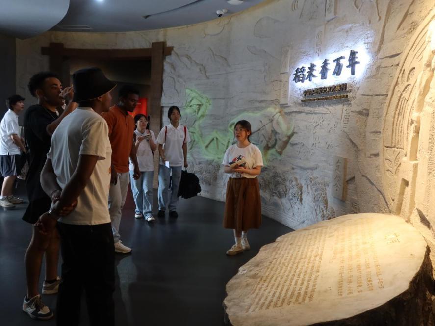 7月7日,长沙理工大学外国语学院研究生暑期专业实践团和来自摩洛哥、苏丹、肯尼亚、尼日利亚等国家的外国友人一同前往隆平水稻博物馆,学习水稻种植的悠久历史,了解“杂交水稻之父”——袁隆平院士的卓越成就。
