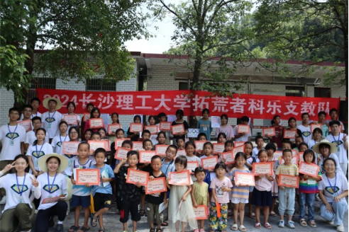 湖南教育新闻网讯(通讯员 张婷 毛婕 张万全)7月25日,在湘西土家族苗族自治州保靖县科乐村野猫小学,稚嫩的“加油”声响彻整个操场。在2024年巴黎奥运会即将开幕之际,长沙理工大学外国语学院“拓荒者”支教团队在这里带领当地的孩子们举办了一场融合奥运元素的趣味运动会,帮助乡村儿童深入理解奥运精神的丰富内涵。