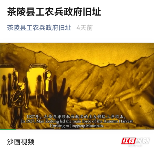 茶陵县工农兵政府公众号也随即发文展出了沙画,同时大家也将视频在微博、抖音等媒体平台传播。在视频下方,网友们纷纷留言表示,“ 沙画视频既有创意又具有学习意义,不仅传播了非物质文化遗产也传播了中国红色文化!”