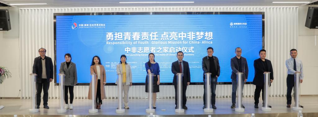 11月25日,“勇担青春责任,点亮中非梦想”中非志愿者之家启动仪式在中非经贸合作促进创新示范园举行。中国(湖南)自由贸易试验区长沙片区雨花党工委委员、管委会副主任邓友,湖南省中非经贸合作促进研究会执行会长兼秘书长彭争,湖南高桥大市场股份有限公司副董事长刘金华,湖南大学、湘潭大学、长沙理工大学、湖南第一师范学院、长沙师范学院、湖南信息学院、湖南外国语职业学院等高校相关代表出席了活动。