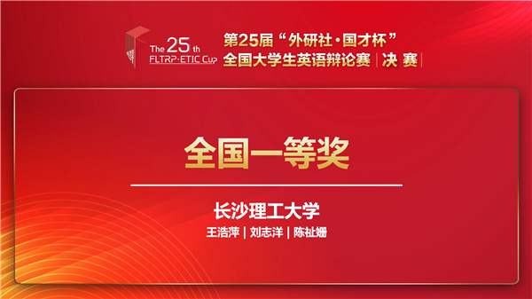 本届决赛共有来自全国各地145支高校队伍代表参赛。比赛前半阶段通过线上方式进行,全程采用双机位,并设定了严格的比赛规则和程序,保证了比赛公平公正进行。经过八轮积分赛,来自长沙理工大学外国语学院翻译2002班的刘志洋同学和陈祉姗同学,在王浩萍老师指导下,在比赛中发挥优秀,凭借缜密的逻辑、流利的表达和默契的配合,积分排名全国第25名,挺进第二阶段决赛。经过决赛最终夺得全国一等奖的好成绩。本届比赛冠军为北京大学,亚军为大连交通大学,季军为北京外国语大学和南京师范大学。