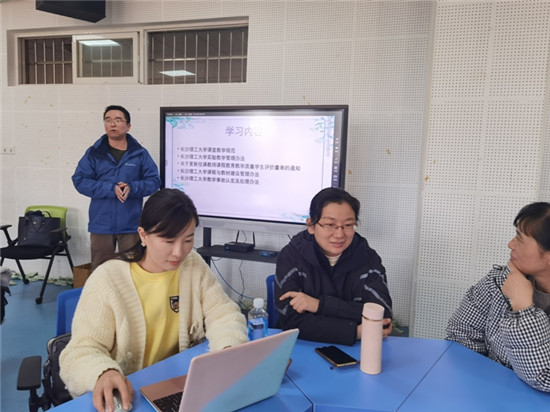 首先,谷丰老师领学了《长沙理工大学课堂教学规范》,副主任谭姗燕老师领学了《关于更新任课教师课程教育教学质量学生评价量表的通知》,副主任易平老师领学了《长沙理工大学课程与教材建设管理办法》,支部书记陈润兰老师《长沙理工大学实验教学管理办法》,副书记韩娜娜老师领学了《长沙理工大学教学事故认定及处理办法》。