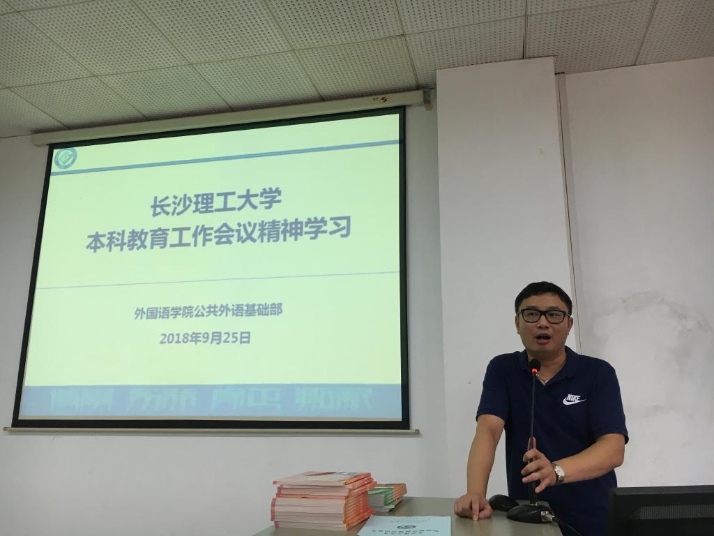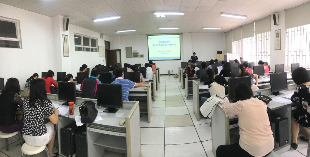 9月25日下午,公共外语基础部全体教师齐聚云塘综合实验楼2-5机房,认真学习长沙理工大学本科教育工作会议报告,并就与基础部相关的大学英语课程改革进行了热烈讨论。