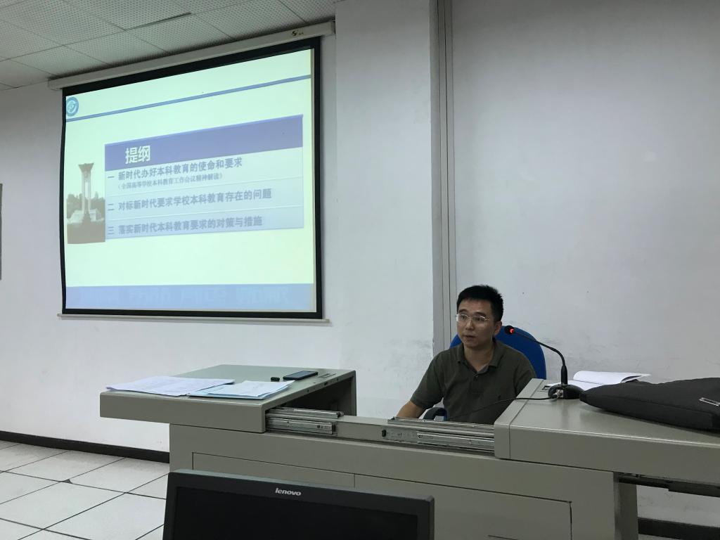 活动中,全体教师认真学习了学校党委付宏渊书记、蒋昌波副校长在长沙理工大学2018年本科教育工作会议上的重要讲话精神。谷主任着重解读了《长沙理工大学本科教育工作会议报告》。该报告分为三个部分:第一,新时代办好本科教育的使命和要求;第二,对标新时代要求学习本科教育存在的问题;第三,落实新时代本科教育要求的对策与措施。