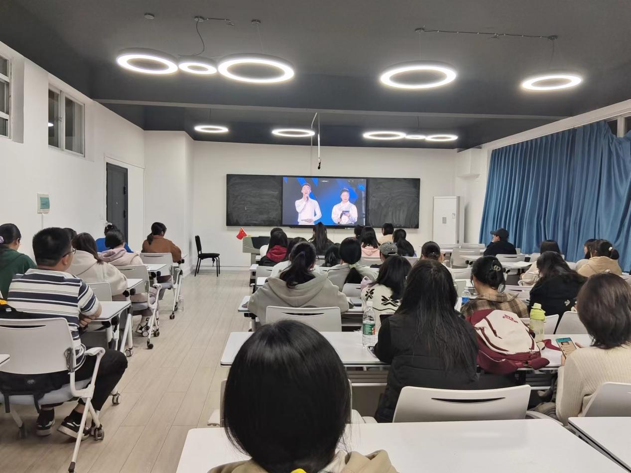 活动由两部分组成。直播开始前,学院团委书记陈若晨老师倾囊分享自己在“挑战杯”等竞赛方面的经验与体会,从赛事简介、孵化过程、心得体会等方面,为同学们分享创新创业赛事、科技创新竞赛相关内容,引导和鼓励同学们积极参与竞赛。随后,组织观看第十八届“挑战杯”全国大学生课外学术科技作品竞赛终审决赛现场回顾视频,包括科创报国主题分享会、优秀项目路演等丰富内容。视频中南京大学药学博士程宇豪、中国航天集团工程师孟森林等众多优秀的“挑战杯”获奖者分享经验,扎实的内容使同学们受益匪浅。