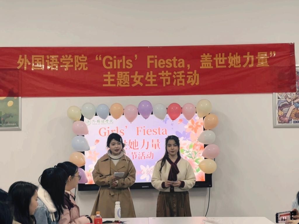 “祝你做自由的飞鸟,祝你可以选择勇敢或者不勇敢,祝你可以为自己绽放,祝你有恒久的温暖和灿烂,祝你有不灭的天真和闪光。”春风送暖,3月8日妇女节将至,为丰富校园文化生活,长沙理工大学外国语学院于3月7日晚上7点在3教220开展了“Girls’ Fiesta,盖世她力量”主题女生节活动。