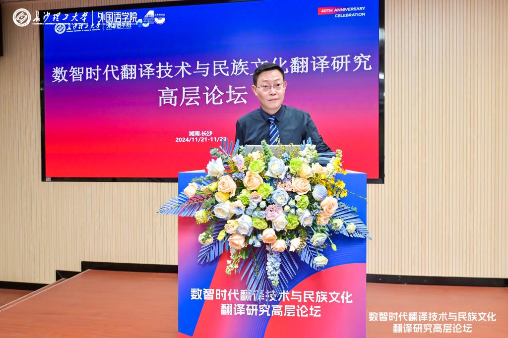 11月21-23日,以“翻译技术与民族文化:探索智能科技下的传承与创新”为主题的数智时代翻译技术与民族文化翻译研究高层论坛在长沙理工大学隆重召开。本次论坛由中国英汉语比较研究会主办,长沙理工大学外国语学院、湖南省科技翻译工作者协会承办。来自国内翻译研究、民族文化传播、外语教育教学领域的200余名学者代表齐聚一堂,共同探讨新时代背景下的外语教育与翻译技术发展。