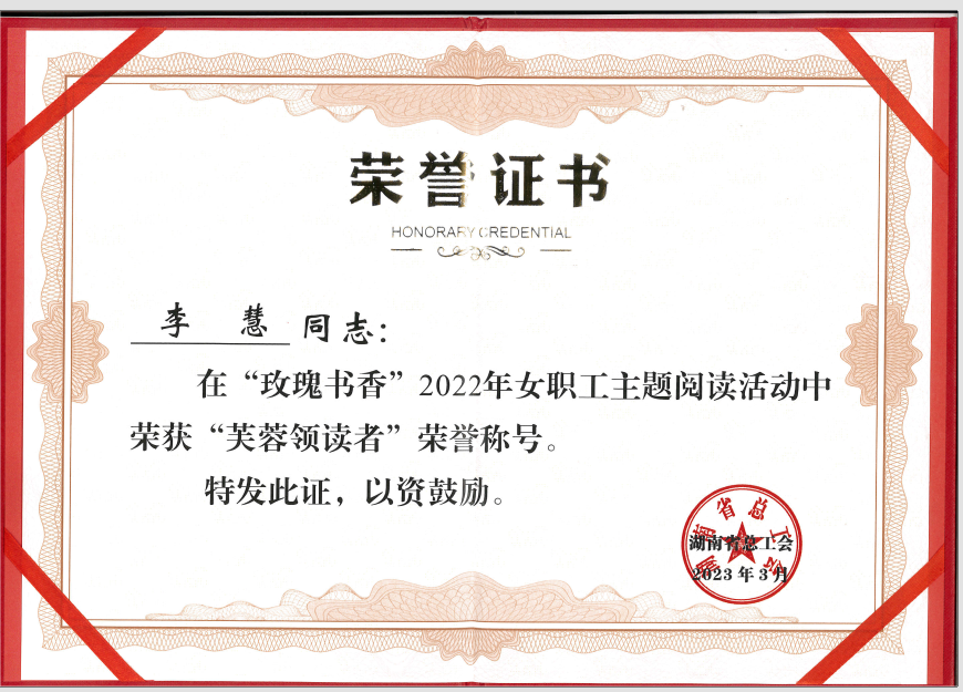 6月2日上午,湖南省总工会在在湖南宾馆会议中心举办湖南省“芙蓉杯”竞赛总结和启动暨“玫瑰书香”启动仪式。在湖南省女职工第九轮“芙蓉杯”竞赛中,长沙理工大学女职工业余学校被授予“女职工培训示范学校”;在2022年“玫瑰书香”女职工主题阅读活动中,学校美育中心读书会被评为“芙蓉读书会”,后勤中心子校李慧老师被评为“芙蓉领读者”。