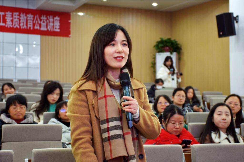 在现场互动环节,聆听讲座的几位老师提出了“如何与高中阶段学习繁忙的孩子更亲密地沟通?”“如何正确引导孩子的情绪?”“在竞争压力较大的大环境下,如何选择校外学科培训?”、“如何引导偏科的孩子?”等问题进行现场探讨,两位老师都一一给予了认真解答。