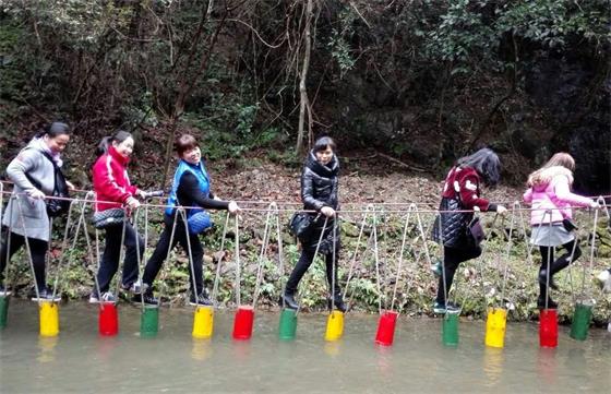 老师们在学院党委副书记、工会主席丁丹的带领下,来到浏阳,参观了美丽乡村-幸福屋场古港人家,欣赏了镶嵌“稻草艺术”的“百亩油菜花”基地。游览了“皇龙大峡谷”,老师们一边触摸着欢快的溪水、飞溅的瀑布,徜徉的长满古藤老树、奇山怪石的崇山峻岭之中,一边尽情地体验着沿途的“浮动梅花桩”、“双龙潭”、“铁索桥”、“壁虎网”、“滚木桥”、“云梯”等近20个拓展项目。