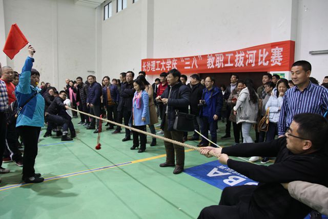 为了庆祝“三八”国际劳动妇女节,丰富广大女职工的文体生活,展示雷竞技官网女职工和谐进取的团队意识及拼搏向上的精神风貌,校工会于3月7日下午在云塘校区体育馆举行了“三八”教职工拔河比赛。校党委书记付宏渊、党委副书记兼工会主席邹宏如亲临比赛现场,兴致勃勃地观看了比赛。