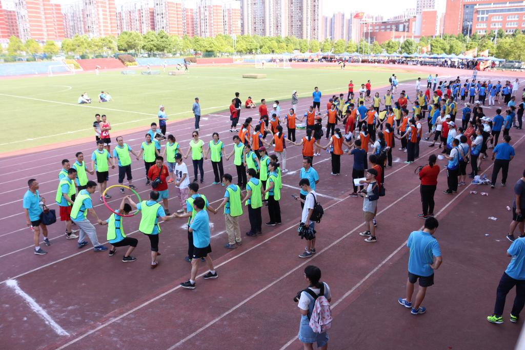 本届趣味运动会设置了十人十一足、跳长绳、一圈到底、袋鼠跳、迎面接力五个比赛项目。经过各二级分工会精心组织,全校25个分工会、122支队伍、2190人次参加。各二级分工会的领导冒着35度的高温顶着烈日带头参赛,教职工的参与热情空前高涨,大家手挽着手、肩并着肩、齐心协力完成十人十一足、一圈到底等项目。在进行袋鼠跳、迎面接力项目时,大家互相鼓励、默契配合、摔倒了立刻爬起来继续跑,这种不畏强手、奋勇争先、重在参与的氛围感染着运动场上的每一个人。经过激烈拼搏,体育学院分工会勇夺冠军,资产公司分工会获得亚军,后勤集团分工会获得第三名,艺术学院分工会获得第四名,土木学院分工会获得第五名,汽机学院分工会获得第六名。