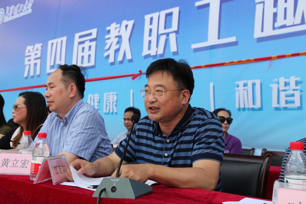 邹宏如在讲话中强调:健康快乐、和谐奋进是这次教职工趣味运动会的主题,通过各类趣味活动以强健身体、和谐关系、凝聚力量,既是构建幸福长理、和谐校园的基本要求,更是全体教职员工的共同愿望和精神需要。希望通过趣味运动会展示教职工健康向上的精神风貌,引领教职工积极参与锻炼的热潮,让大家工作之余走出教室、走出办公室、走出网络,强健身体、和谐关系、凝聚力量、同心同德、共创佳绩!